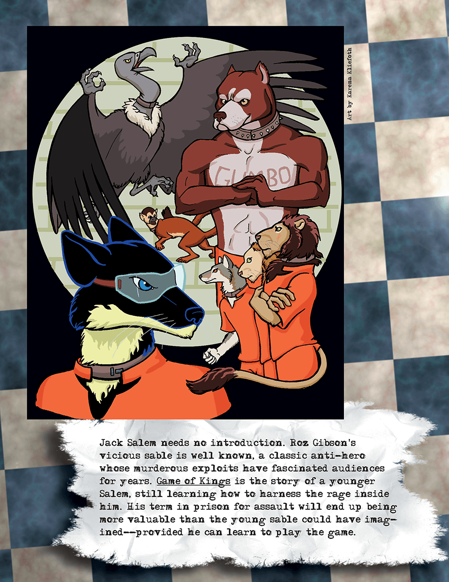 Jack Salem needs no introduction. Roz Gibson's vicious sable is well known, a classic anti-hero whose murderous exploits have fascinated audiences for years. Game of Kings is the story of a younger Salem, still learning how to harness the rage inside him. His term in prison for assault will end up being more valuable than the young sable could have imagined—provided he can learn to play the game.